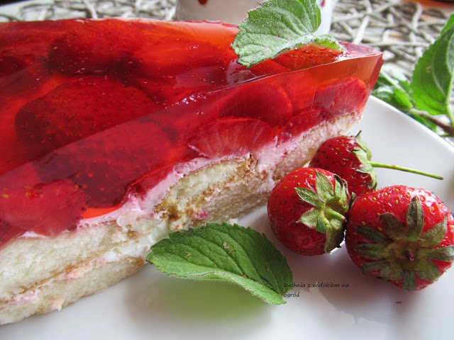 Ciasto bez pieczenia z truskawkami i galaretką.
