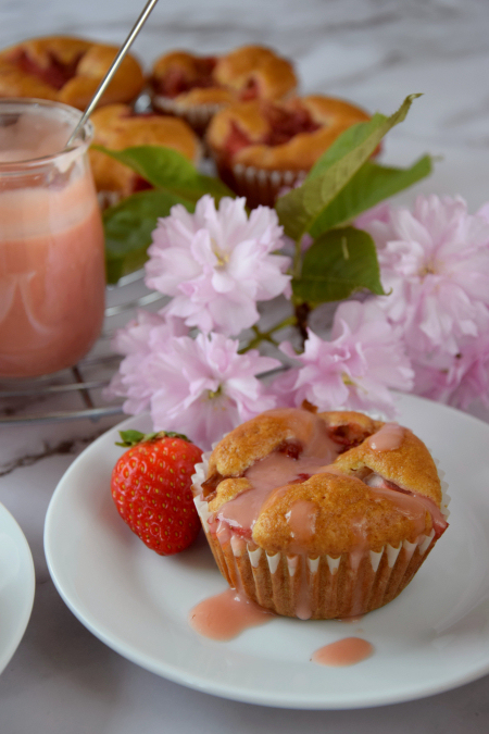 01.06.2021 Magda Bardzo sezonowe muffinki z karmelizowanym rabarbarem, truskawkami i różowym karmelem…