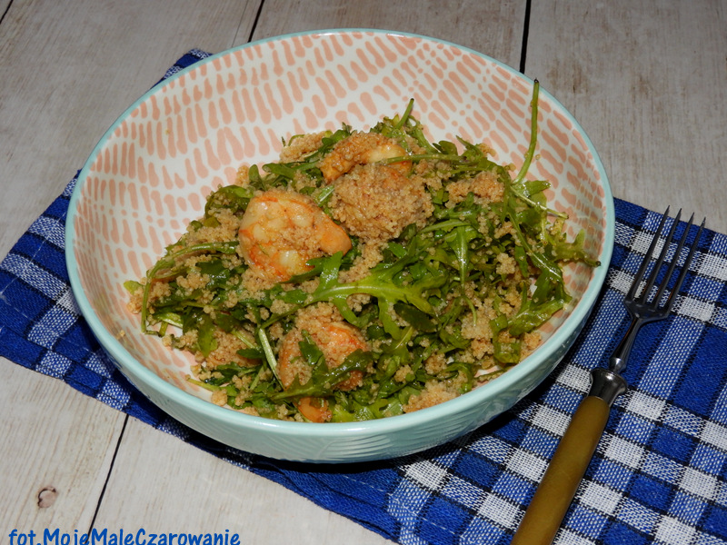 Pyszna sałatka, aromatyczna a w niej chrupiące krewetki i kuskus a także…