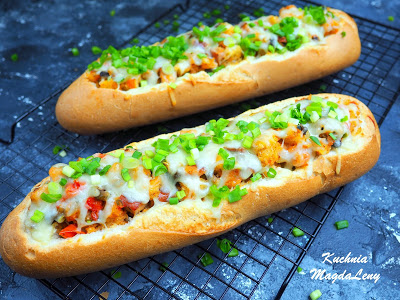 Bagietki bogato nadziane farszem i zapieczone pod mozzarellą w piekarniku. Na farsz…