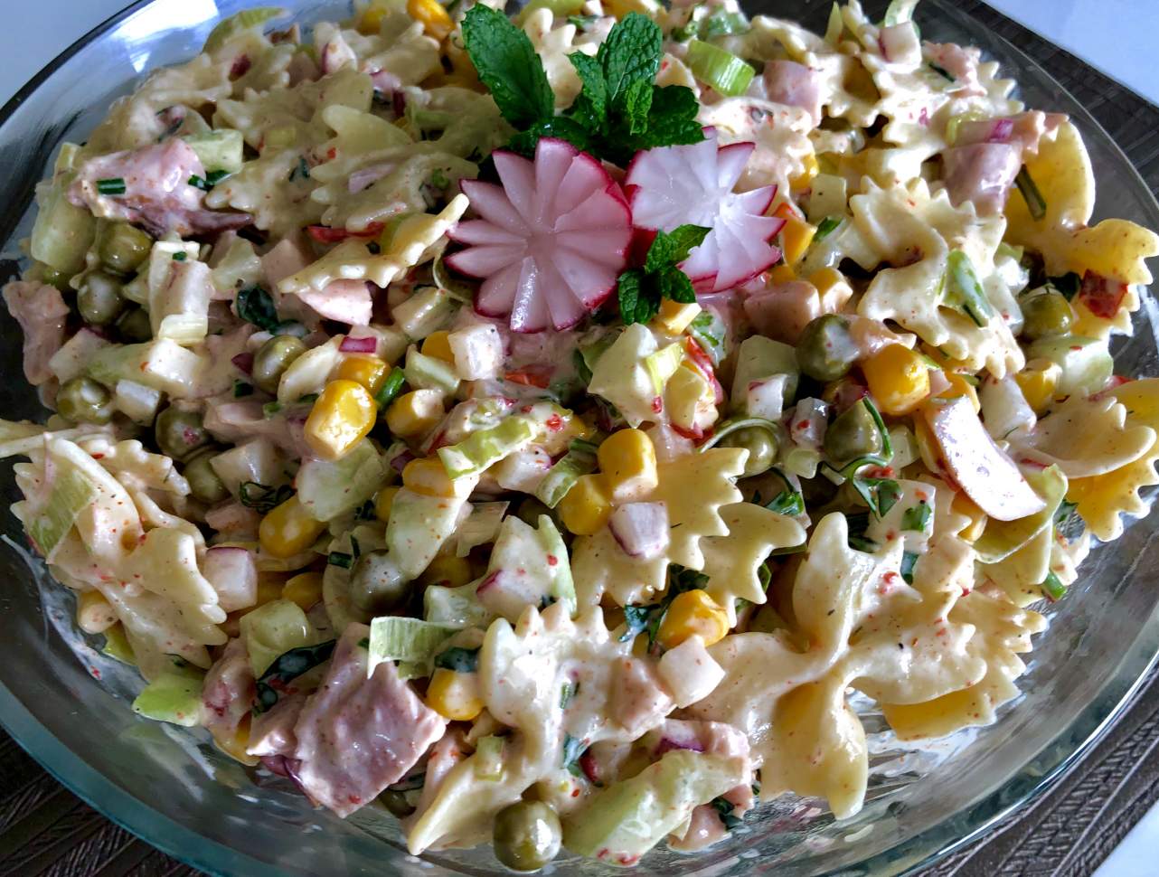Smaczna i treściwa sałatka z makaronem, wędzonym kurczakiem i warzywami. Świetnie sprawdzi się na każdym przyjęciu. Polecam!