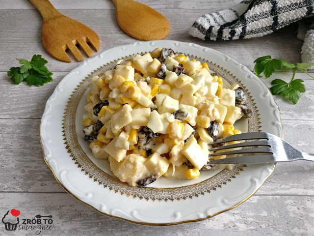 Kolejna już propozycja na sałatkę z serii szybko i smacznie. Na blogu jest kilka takich propozycji a dziś dołączam kolejną. Prosta sałatka, tylko kilka składników a w smaku rewelacyjna. Wystarczy, aby poleżała około godzinki w lodówce, tak by smaki się przegryzły i można zajadać. U mnie sałatka się sprawdziła i
