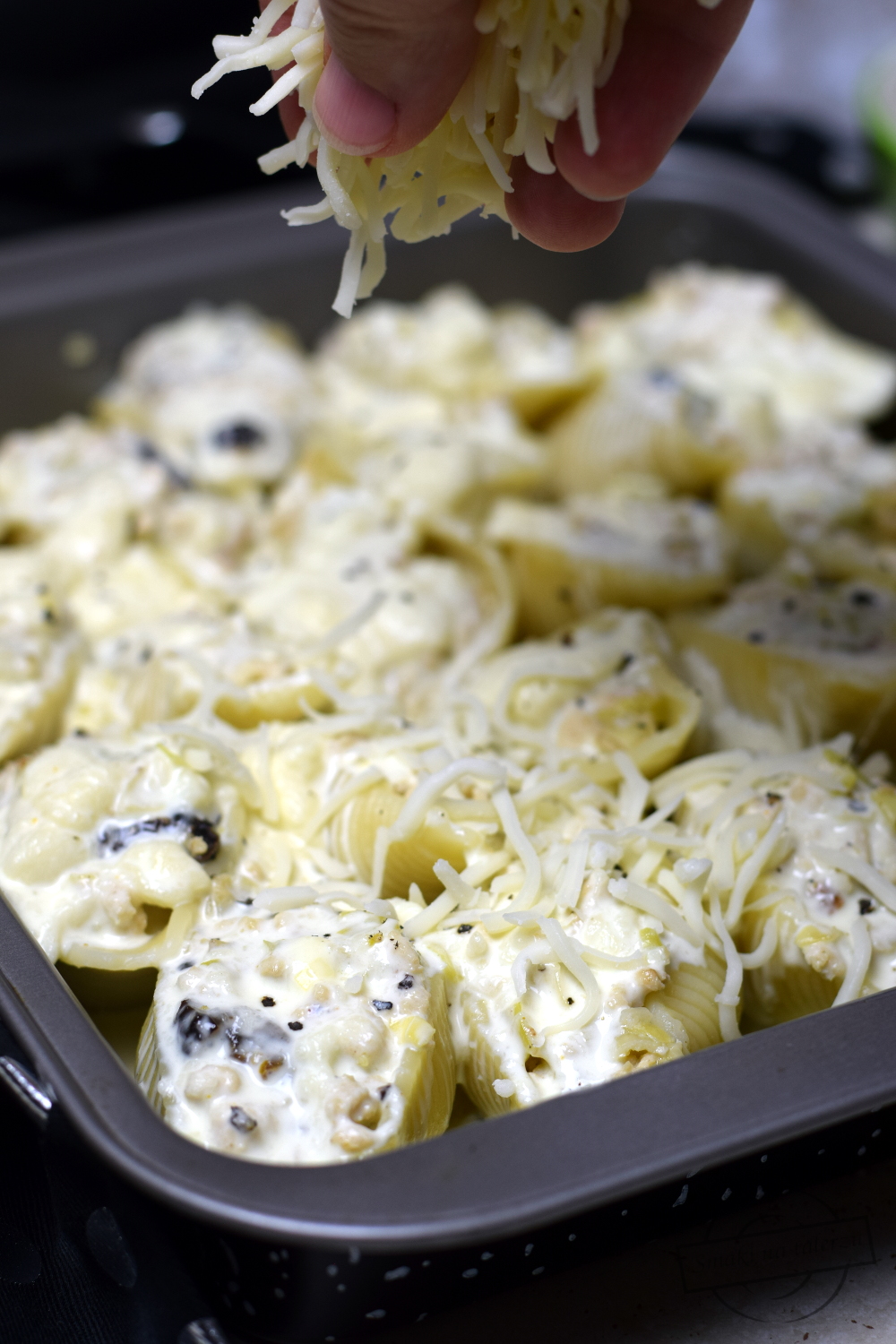 Bardzo lubię tego typu dania. Pyszny makaron, napełniony po brzegi farszem z delikatnego, mielonego mięsa drobiowego z dodatkiem porów i suszonych śliwek. Całość delikatnie słodka, z wyraźną nutą curry i oczywiście z dużą ilością sera:)