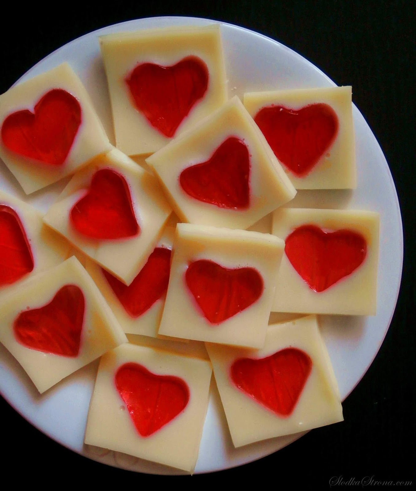 Żelki na bazie mleka skondensowanego z uroczymi galaretkowymi serduszkami to świetny pomysł…