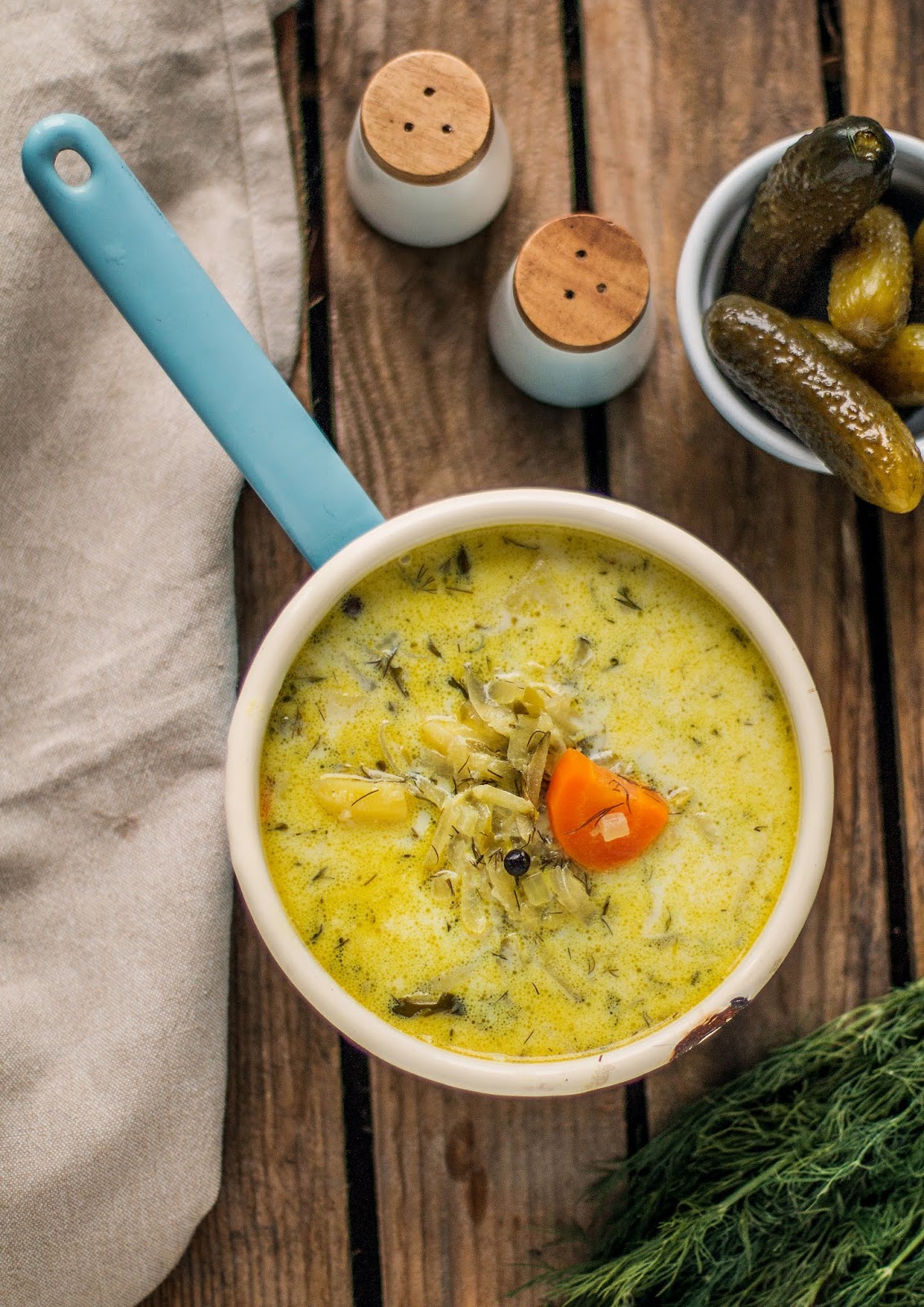 Wiele pisać nie będę, to moja ulubiona zupa z dzieciństwa – ogórkowa. Tym razem w klasycznej wersji, zabielana sojową śmietanką i z całą masą świeżego koperku! Prosta, szybka i przepyszna.