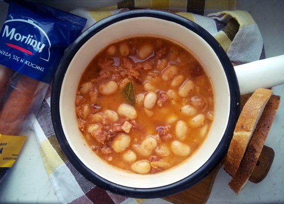 Za oknem typowo listopadowa pogoda-szaro, buro, wieje i leje. Nie lubię jesieni w takim wydaniu dlatego na poprawę nastroju ugotowałam ulubiony, smaczny i sycący posiłek – Fasolkę po bretońsku. Jest to jedno z najbardziej popularnych dań w kuchni polskiej chociaż nazwa wskazuje inaczej.