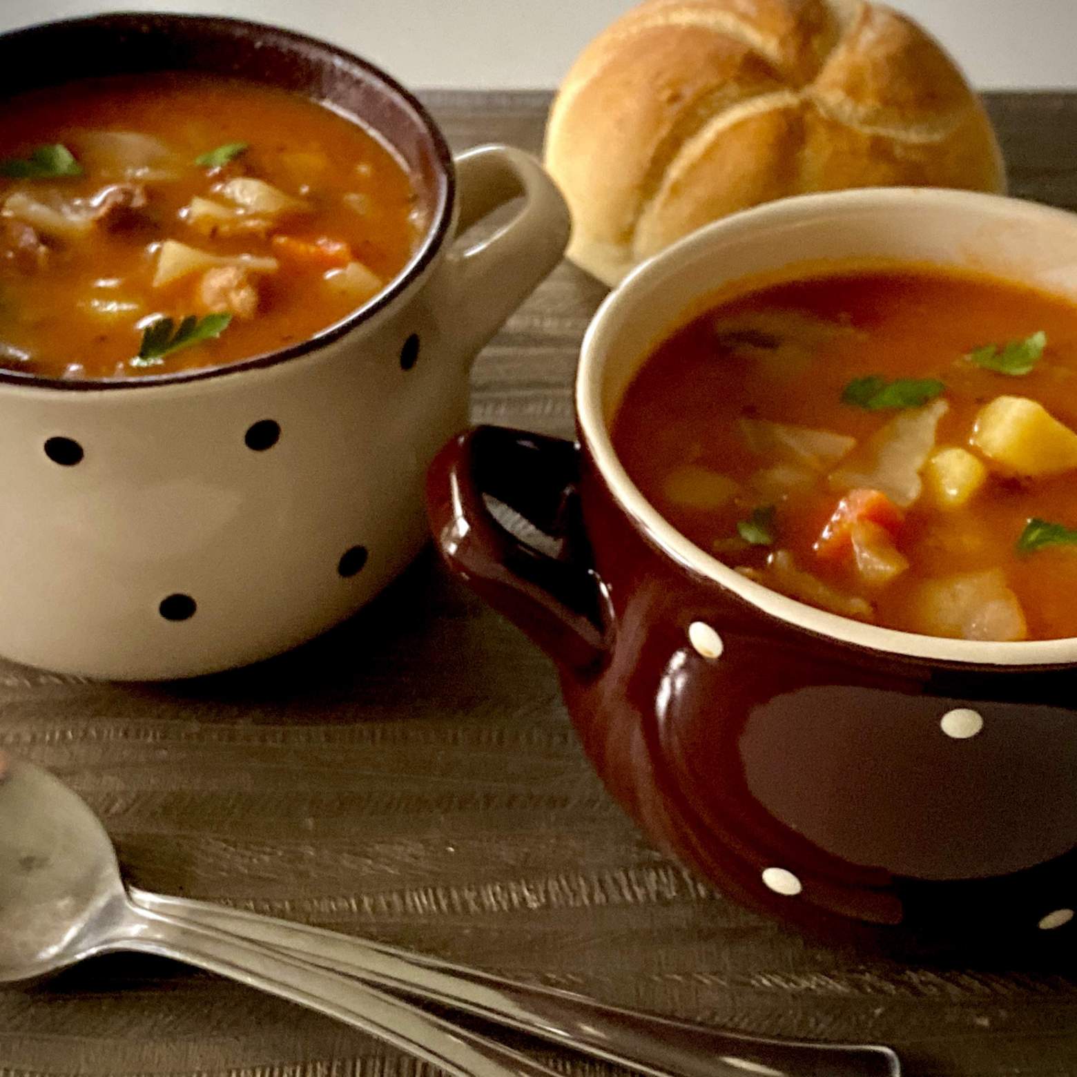 Rozgrzewająca, treściwa, lekko pikantna i sycąca zupa z mięsem wieprzowym i mnóstwem warzyw. Idealna na chłodne jesienne i zimowe dni!