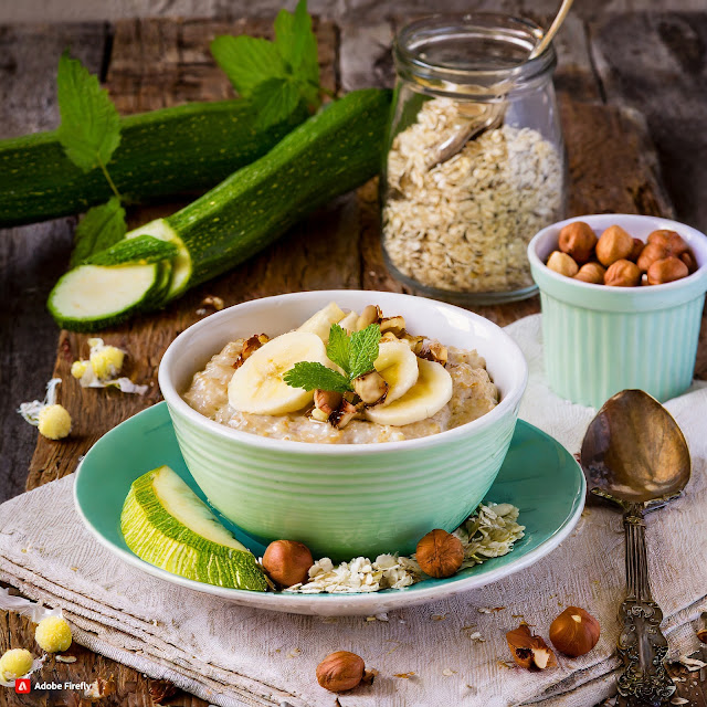 Owsianka z cukinią, bananem i orzechami laskowymi / Oatmeal with zucchini, banana and hazelnuts