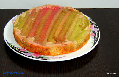 Ciasto migdałowe z rabarbarem i syropem z czerwonego wina