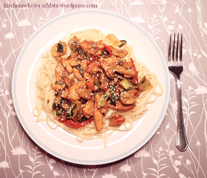 To pyszne, orientalne danie znalazłam na tej stronie. Podałam je z makaronem…