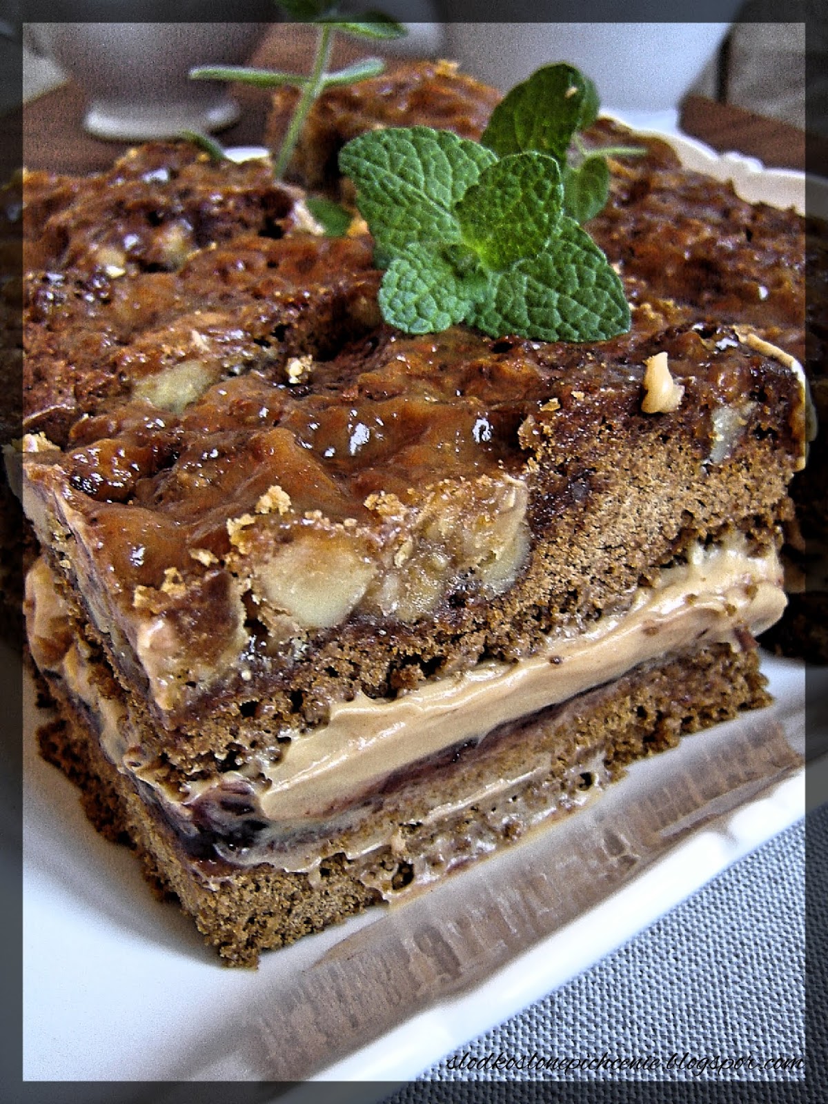 Pyszne ciasto składające z dwóch miodowych blatów, przełożonych powidłami śliwkowymi i kremem…