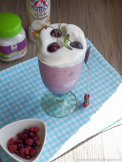 Lody bananowo-sernikowe z jagodami acai słodzone stewią w kryształkach (Stewiarnia.pl) podane ze…