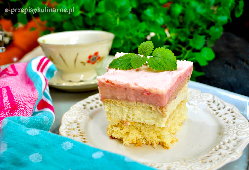 Przepis na trójwarstwowe ciasto z biszkoptem, masą budyniowo-kokosową i pianką z owocami.…