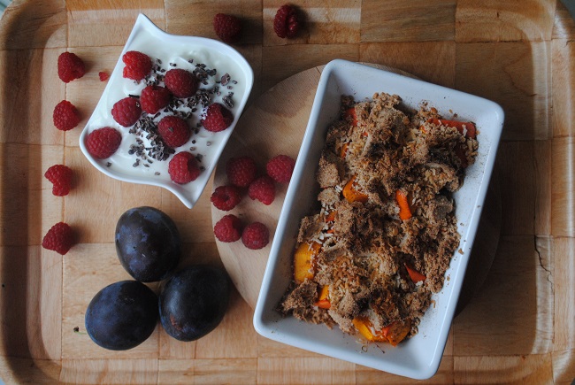 794. Dynia pod kokosową kruszonką, jogurt z malinami