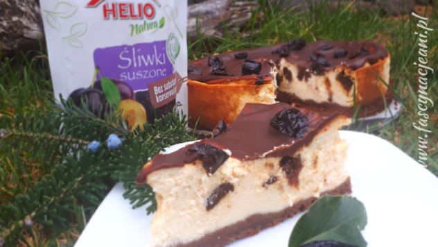 Suszone śliwki – owoce, które są w moim domu nie tylko w okresie zimowym. Przed Bożym Narodzeniem jednak zawsze uzupełniam ich zapas. Koniecznie muszą znaleźć się w świątecznym bigosie, kompocie, pieczonym schabie a także w świątecznych wypiekach. Jednym z nich jest sernik z suszonymi śliwkami. Przygotowany na spodzie z kakaowych