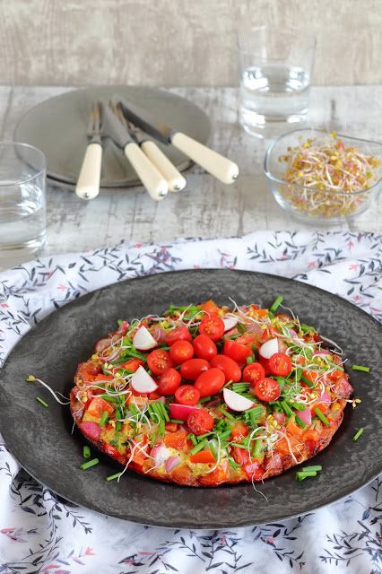 Omlet z kiełbasą i warzywami prezentuje się nieziemsko, jest sycący i zdrowy. Bez wątpienia zaspokoi każdy głód. Po takim śniadaniu mam energię na cały dzień. Omlet można serwować dodatkowo z lekką sałatką. Muszę przyznać, że u mnie potrawa ta zagościła na obiad 😉 Tak się składa, że mamy remont,