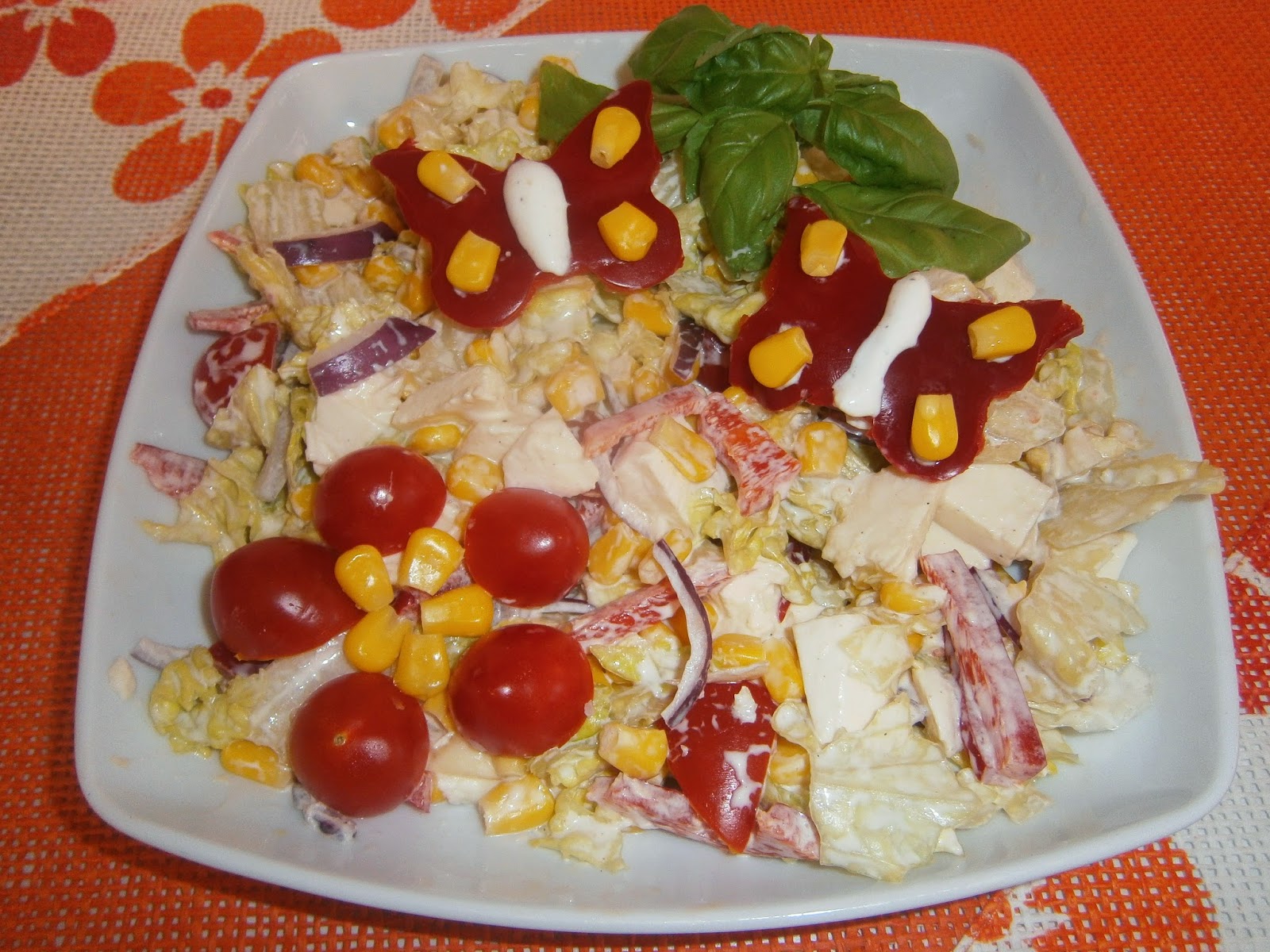 Lekka, smaczna sałatka na śniadanie, kolację lub przekąskę. Zamiast typowego sosu sałatkowego…