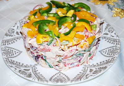Szybka i bardzo smaczna sałatka z paluszkami krabowymi. Ładnie się prezentuje w…