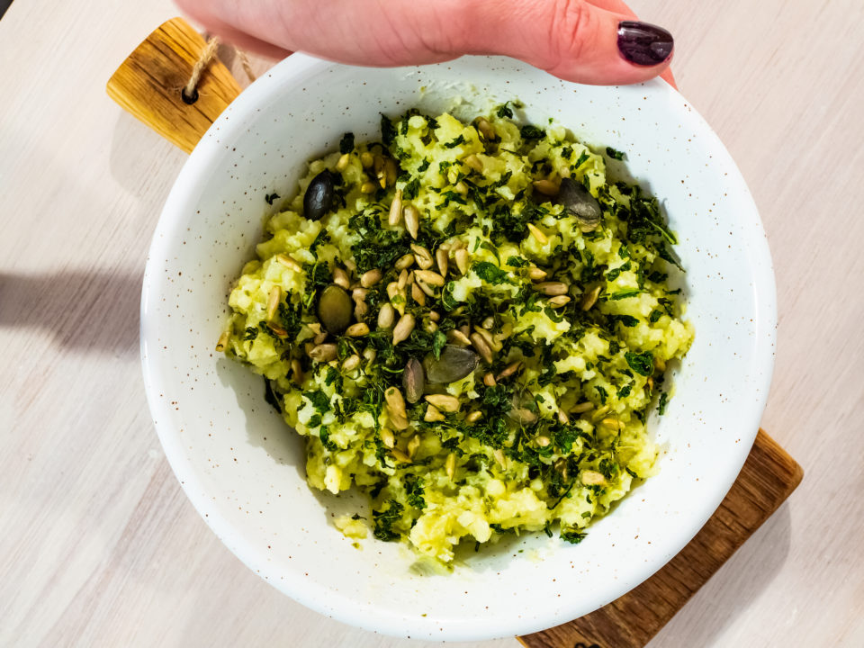 Przepis zaczerpnięty z platformy Cookido. Zmodyfikowałam składniki, ale przede wszystkim – użyłam cydru, który w mojej opinii czyni risotto wyjątkowo smacznym. Można pokusić się o dodanie drobno siekanego jabłka.