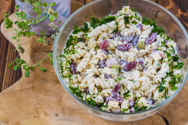 Bardzo lubię tą sałatkę i często ją robię tylko jakoś ciągle nie składało się aby ją tu zaprezentować, aż wreszcie nadeszła ta chwila 😀