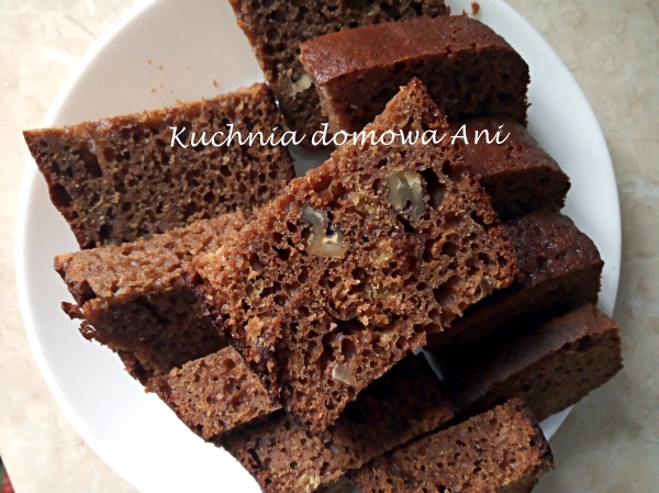 W ubiegły weekend upiekłam taki oto piernik. Cieszę się, że ciasto przełożyłam do blaszki prostokątnej, a nie keksówki, bo naprawdę pięknie urósł i był podzielny. Będzie się nadawał na świąteczny stół. Jest prosty i szybki w przygotowaniu. Polecam!