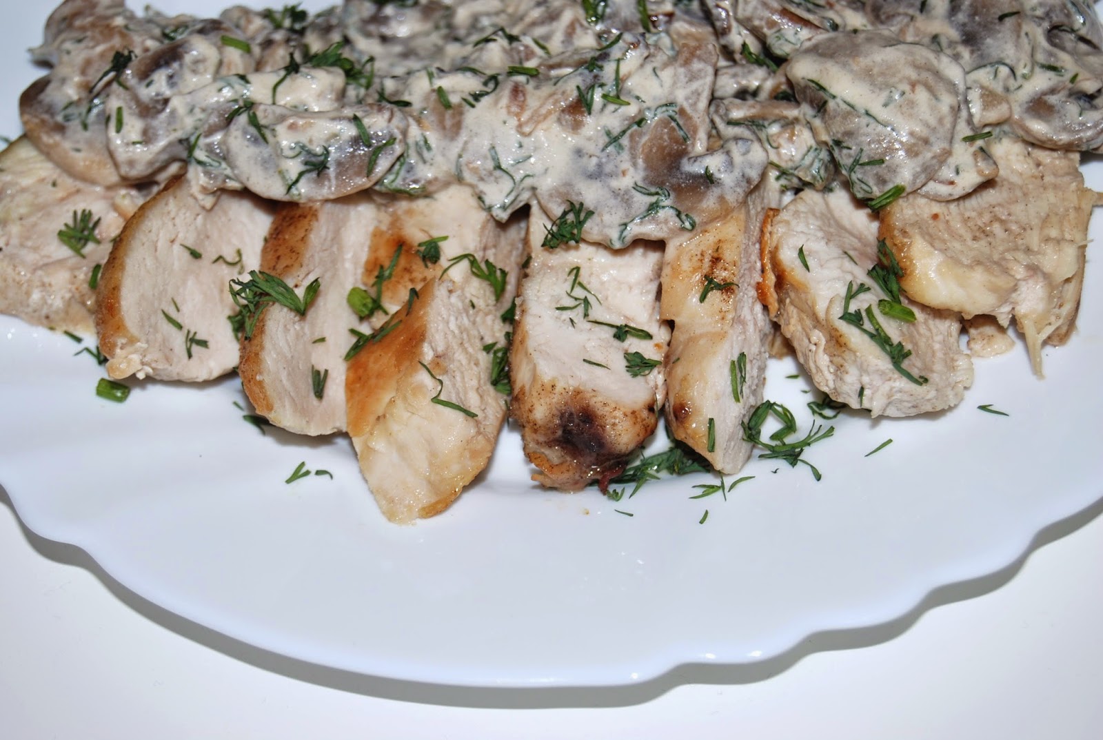 Składniki:3 piersi z kurczaka250 g pieczarek250 ml śmietany kremówki1/2 pęczka koperku3 szalotki2…