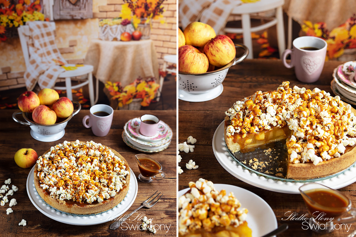 Wszyscy już szykują zimowe przepisy, a ja jeszcze wśród jesiennych liści zakopana 😉 Mam dziś dla Was przepis, który znalazłam w małej, niemieckiej gazetce z przepisami kulinarnymi pt. ”Heiß gelibte Herbstkuchen” Nr. 18/2019. Jest to „Apfelkuchemit Popcorn” – ciasto jabłkowe na kruchym spodzie z pysznym jabłkowym budyniem, kawałkami jabłek,
