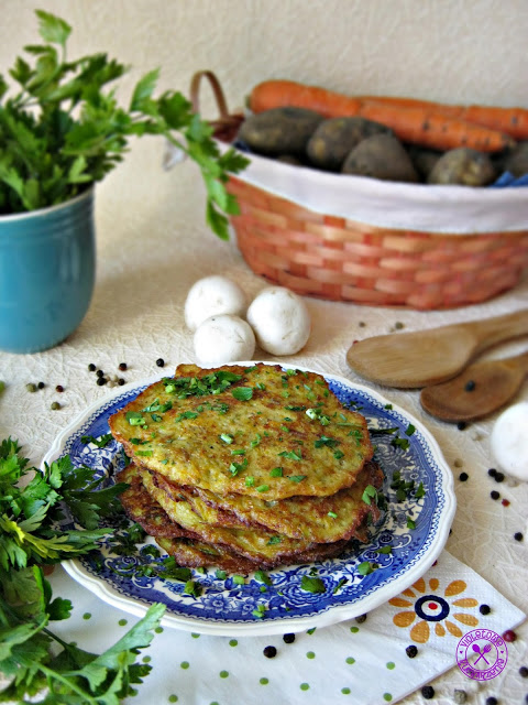Pyszne placuszki ziemniaczane z dodatkiem marchewki, pieczarek i ciągnącego żółtego sera. W…