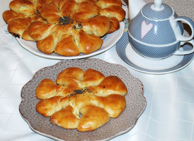 Bułki drożdżowe w kształcie kwiatków. Nadzienie ze słodkiego sera twarogowego.Puszyste i mega…