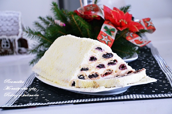 Pod tą nazwą kryje się pyszne, nietypowe i ciekawie wyglądające ciasto. Owszem, jest dosyć pracochłonne, ale efekt końcowy jest rewelacyjny. Ciasto składa się z kruchych ruloników wypełnionych wiśniami i ułożonych w kształcie piramidki. Całość połączona jest masą z gęstej śmietany. Tym ciastem na pewno zaskoczycie swoich gości. Polecam !