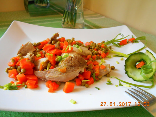 Mięso z golonki, marchewka, groszek, trochę przyprawi obiad gotowy. Składniki:-ok. 80 dkg…