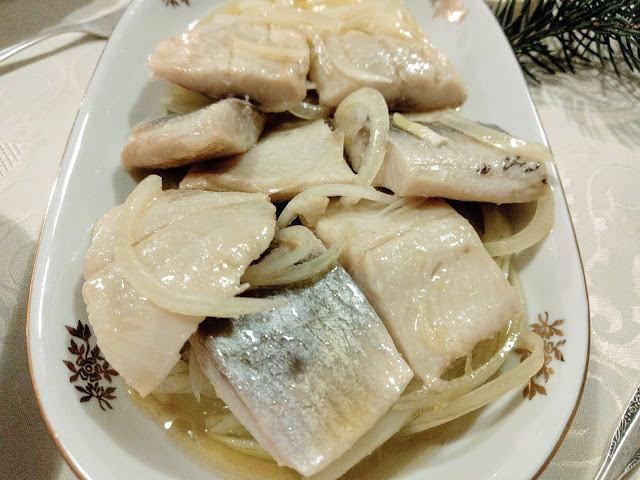Wigilijne śledzie z cebulą marynowane w soku z cytryny i oliwie