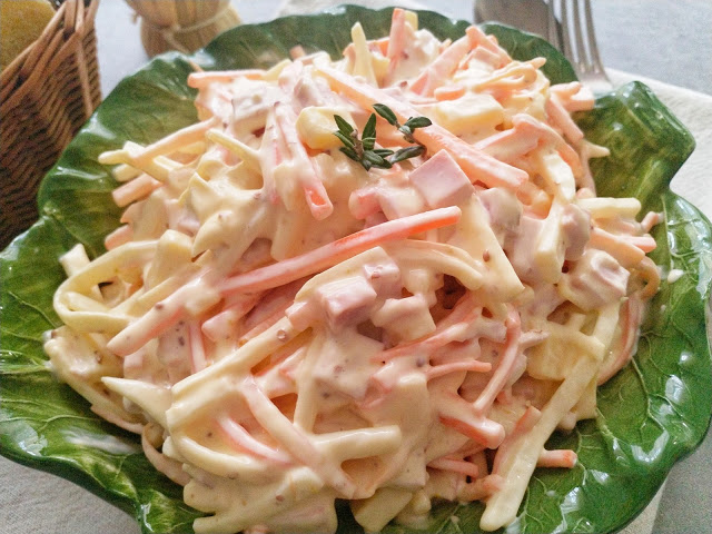 Sałatka „capricciosa” to absolutny klasyk kuchni włoskiej pochodzący z Piemontu. Sałatka jest jedną z najbardziej lubianych i znanych przekąsek, niemal niezastąpiona na stołach w czasie świąt, imprez i wszelakich okazji.Głównymi składnikami sałatki jest seler, marchew, szynka i ser, których smak wzbogaca dodatek majonezu i musztarda. Polecam serdecznie! Smacznego!
