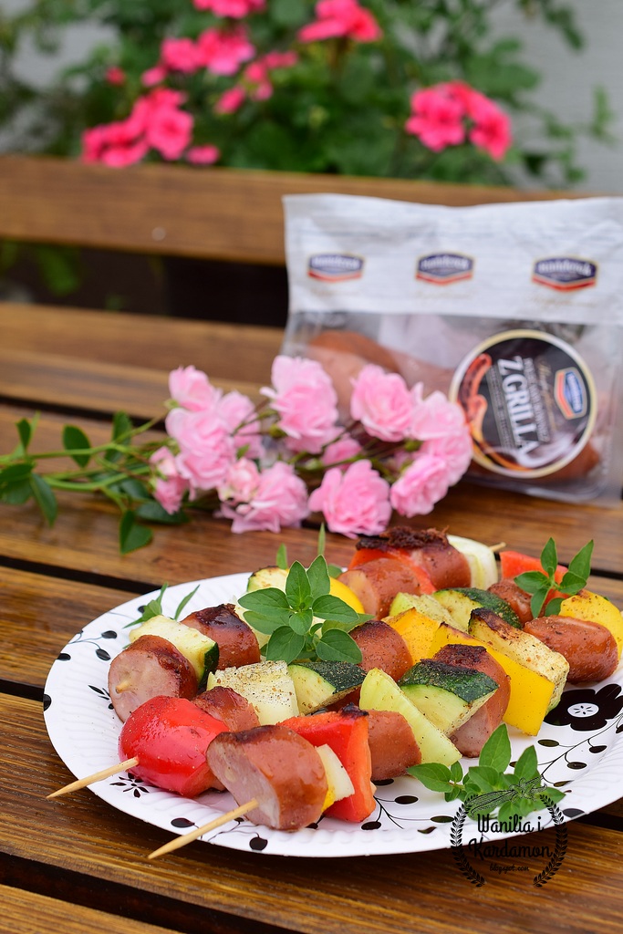 Szaszłyki z kiełbasą i warzywami w marynacie balsamicznej