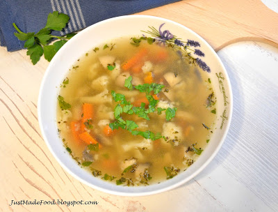 Zupa jarzynowa z pieczarkami i kalafiorem. Wprawdzie o tej porze roku kalafior…