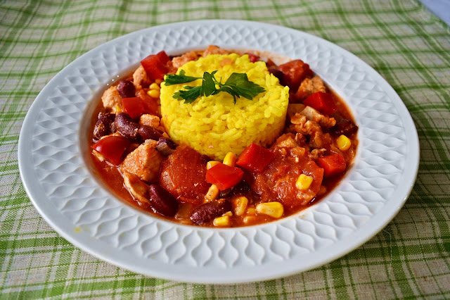 Od zawsze lubimy na ostro, od zawsze lubię eksperymenty kulinarna. Dziś danie inspirowane daniem kuchni meksykańskiej-chilli con carne, które oboje uwielbiamy. Zamiast mięsa mielonego użyłam kurczaka. Dlaczego kurczak? Bo to zdrowsze i chudsze mięso, no i oczywiście dużo szybsze do przygotowania. Mięso soczyste, kukurydza chrupiąca, danie pikantne-ogólnie, naprawdę