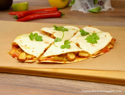 Quesadilla z indykiem, z ostrym sosem, czyli kolejne danie z serii meksykańsko-amerykańskich. Quesadilla może być oczywiście także z kurczakiem lub innym ulubionym mięsem. Ja dla odmiany wybrałam indyka. Mięso można usmażyć lub zgrillować. Danie bardzo proste i pyszne 👍 Sos możecie wykorzystać gotowy, lub przygotować go samodzielnie.