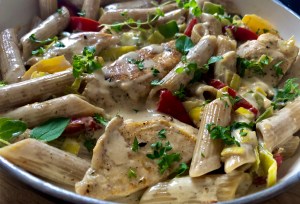 Kurczak z makaronem w sosie serowo-porowym Szybki, prosty i pyszny obiad! Filet…
