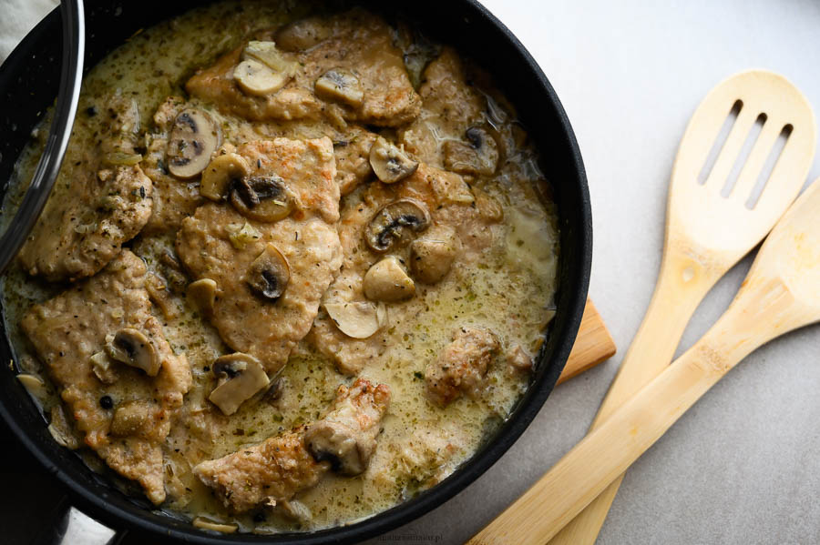 Ten przepis właściwie powstał w wyniku improwizacji, a takie dania zdecydowanie lepiej smakują. Klasyczny schabowy nieco się już znudził, więc szukałam pomysłu na podanie schabu inaczej i w trochę lżejszej formie. Dodałam dwa do dwóch i oto jest przepis. Okazał się strzałem w dziesiątkę! Mięsko po kilkudziesięciu minutach duszenia