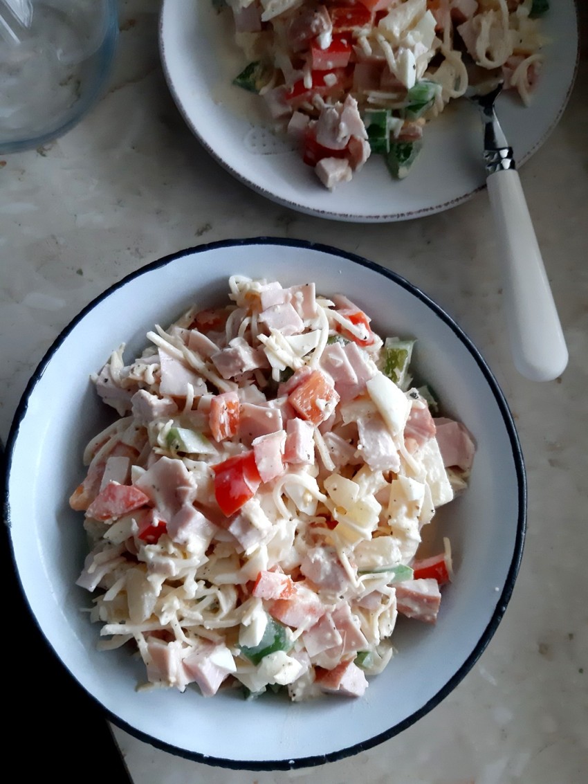 Sałatka z szynką i ananasem to sprawdzona propozycja na imprezowy stół. Idealnie skomponowana wytrawno-słodka sałatka na każdą okazję. Połączenie papryki, selera konserwowego, ananasa i szynki to strzał w dziesiątkę. Sałatka idealna do grzanek, bagietki z masłem lub ot tak, wyjadana widelcem w ciągu dnia.