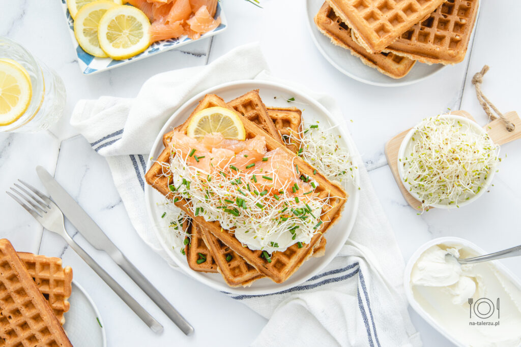 Gofry wytrawne fit z wędzonym łososiem to pyszny pomysł na śniadanie czy…