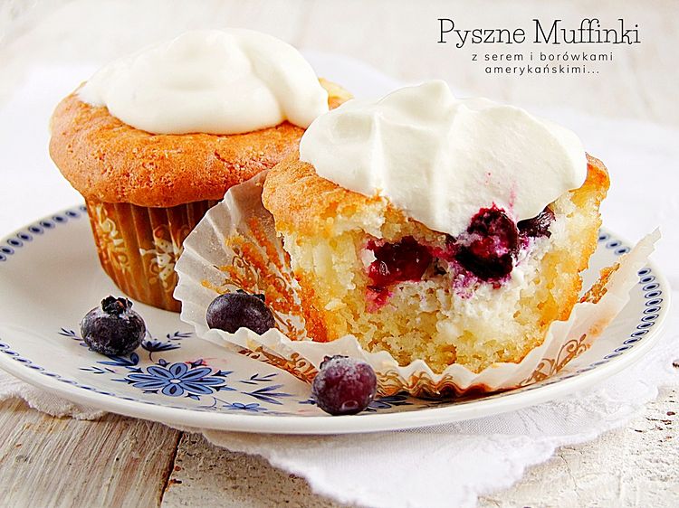…gdy najdzie ochota na co słodkiego nie ma to jak szybkie i proste do zrobienia muffinki. Tym razem muffinki z białym serem i borówkami. Dodatkowo u nas obowiązkowo na wierzchu bita śmietana…