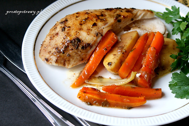 Kurczak z warzywami z piekarnika.