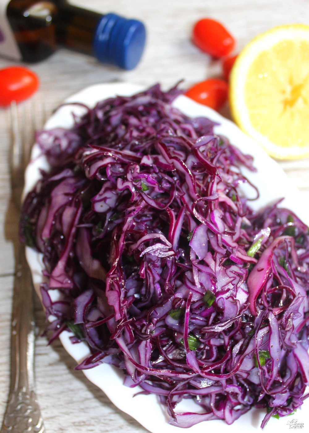 Surówka z czerwonej kapusty z czosnkową nutą Prosta, pyszna surówka, którą można przygotować w kilka minut. Minimalna ilość składników. Taka surówka z czerwonej kapusty z czosnkową nutą idealnie pasuje do najróżniejszych mięsnych sosów. Choć oczywiście można ją podać do dowolnego drugiego dania lub zjeść od