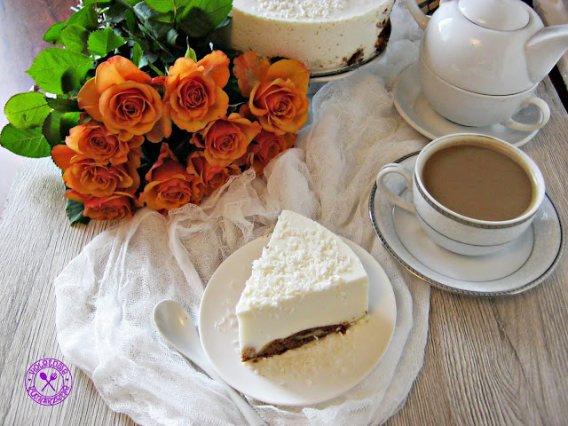 Błyskawiczne w przygotowaniu kokosowe ptasie mleczko. Masa jest niebiańsko lekka i puszysta. Wierzch ciasta można oblać ulubioną czekoladą lub po prostu obsypać wiórkami kokosowymi. Za spód ciasta posłużyły batoniki dla dzieci (misie lubisie).