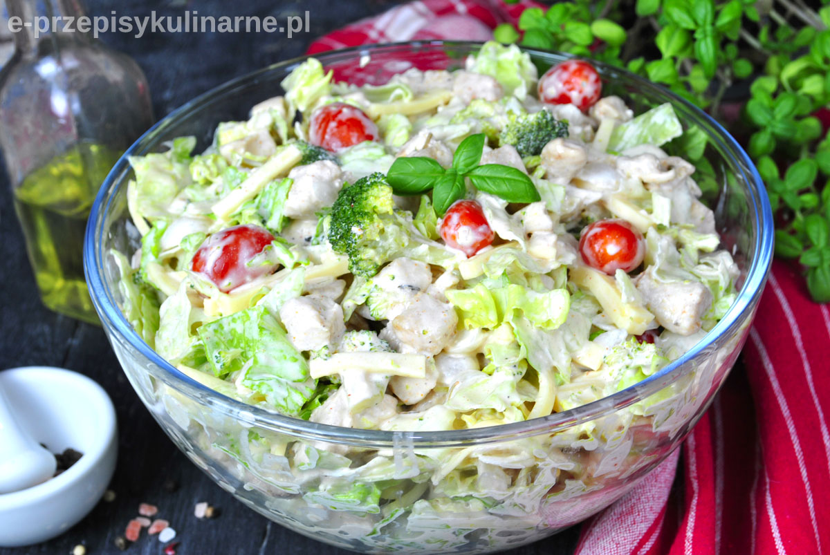 Sałatka szefa z piersią kurczaka i sałatą lodową jest bardzo pyszna, kolorowa…
