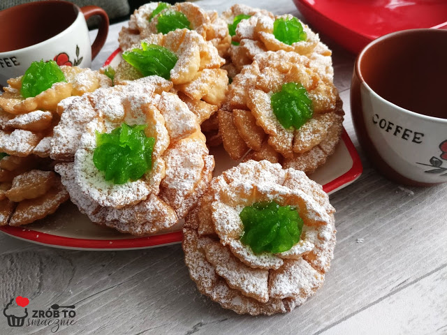 Karnawał trwa, więc jeśli jeszcze nie przygotowaliście róży to serdecznie polecam. Delikatne, kruche ciasto, obficie posypane cukrem pudrem. Swoim wyglądem przypominają róże stąd też ich nazwa. Najczęściej na środku dekorowane są wiśniami, bądź dżemem lub marmoladą. Doskonałe w karnawale, ale też i na tłusty czwartek mogą zastąpić pączka 😉
