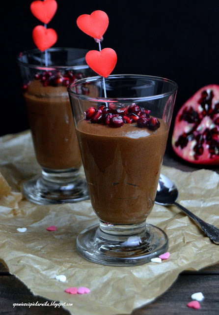 Walentynkowy deser kojarzy mi się przede wszystkim z czekoladą :). A taki mus czekoladowy to wymarzony deser dla tych, którzy czekoladę wprost kochają ( ale oczywiście nie bardziej od swojej drugiej połówki ;)). Mus jest naprawdę mocno czekoladowy, puszysty, po prostu pyszny. Jest też dość sycący, dlatego polecam podać