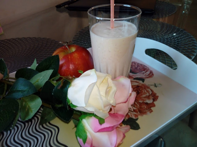 U mnie ostatnio trwa faza koktajli. Codziennie przygotowujemy z dziećmi jakiś inny koktajl na bazie owoców i przeważnie produktów mlecznych. Były już koktajle jagodowe, a dziś koktajl o smaku szarlotki. Koktajl przygotowałam z prażonych jabłek z cynamonem, mleka i jogurtu naturalnego. Dodałam do niego również ciasteczka. Koktajl wyszedł fajny