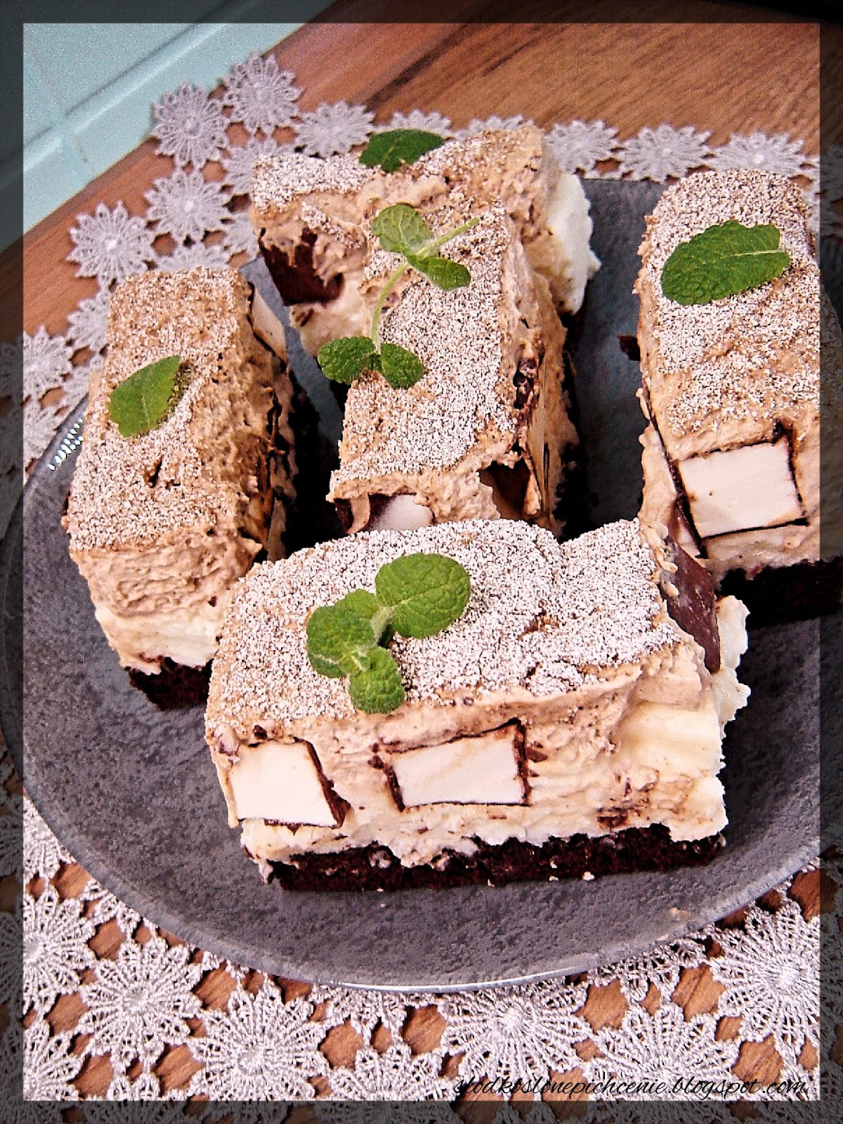 Wyśmienite ciasto składające się z kakaowego biszkoptu, kremu kokosowego z ptasim mleczkiem oraz warstwy cappuccino.